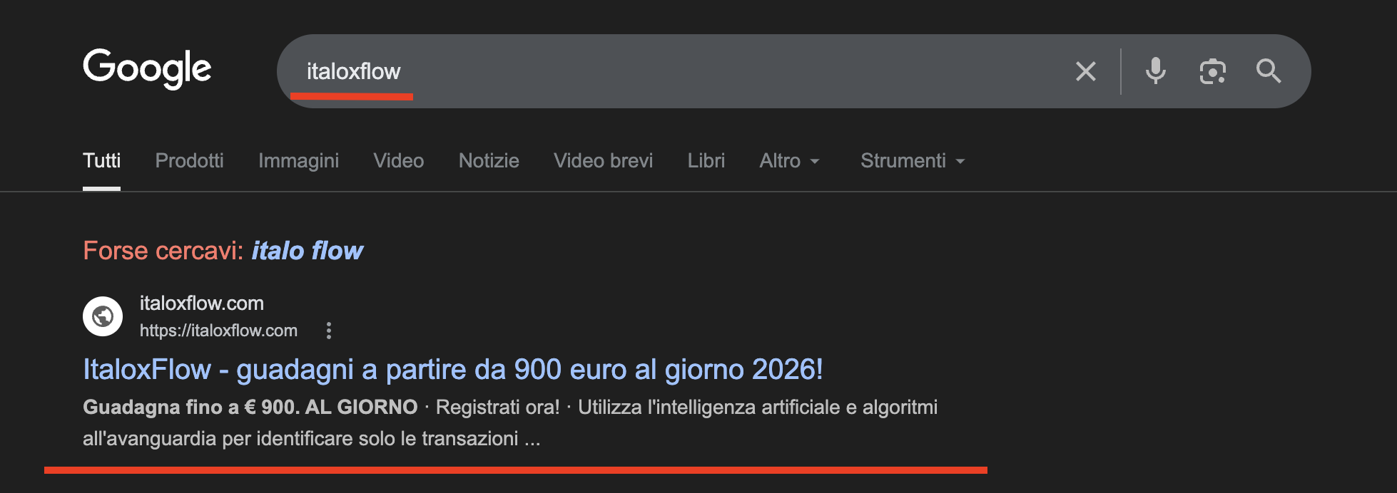 La ricerca "Italoxflow" balza al primo posto su Google entro 20 minuti dall'inizio della diretta televisiva.